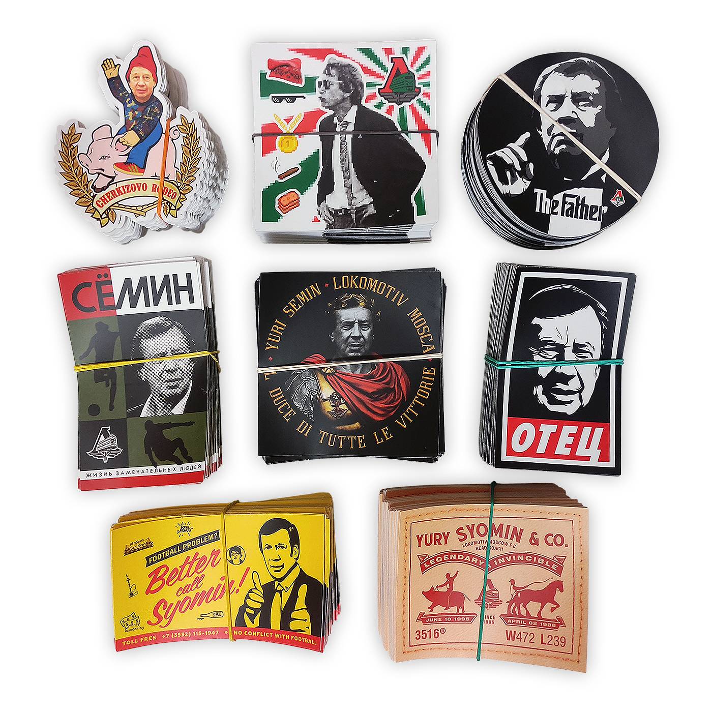 В день 78 годовщины Юрий Павловича Сёмина мы собрали наиболее интересные работы нашего админа и напечатали лимитированным тиражом набор самоклеющихся кусочков истории Юрия Павловича, красно-зелëной линией прошедшей через всю современную жизнь футбольного «Локомотива» и, такое ощущение, что и через каждого фаната нашего клуба.