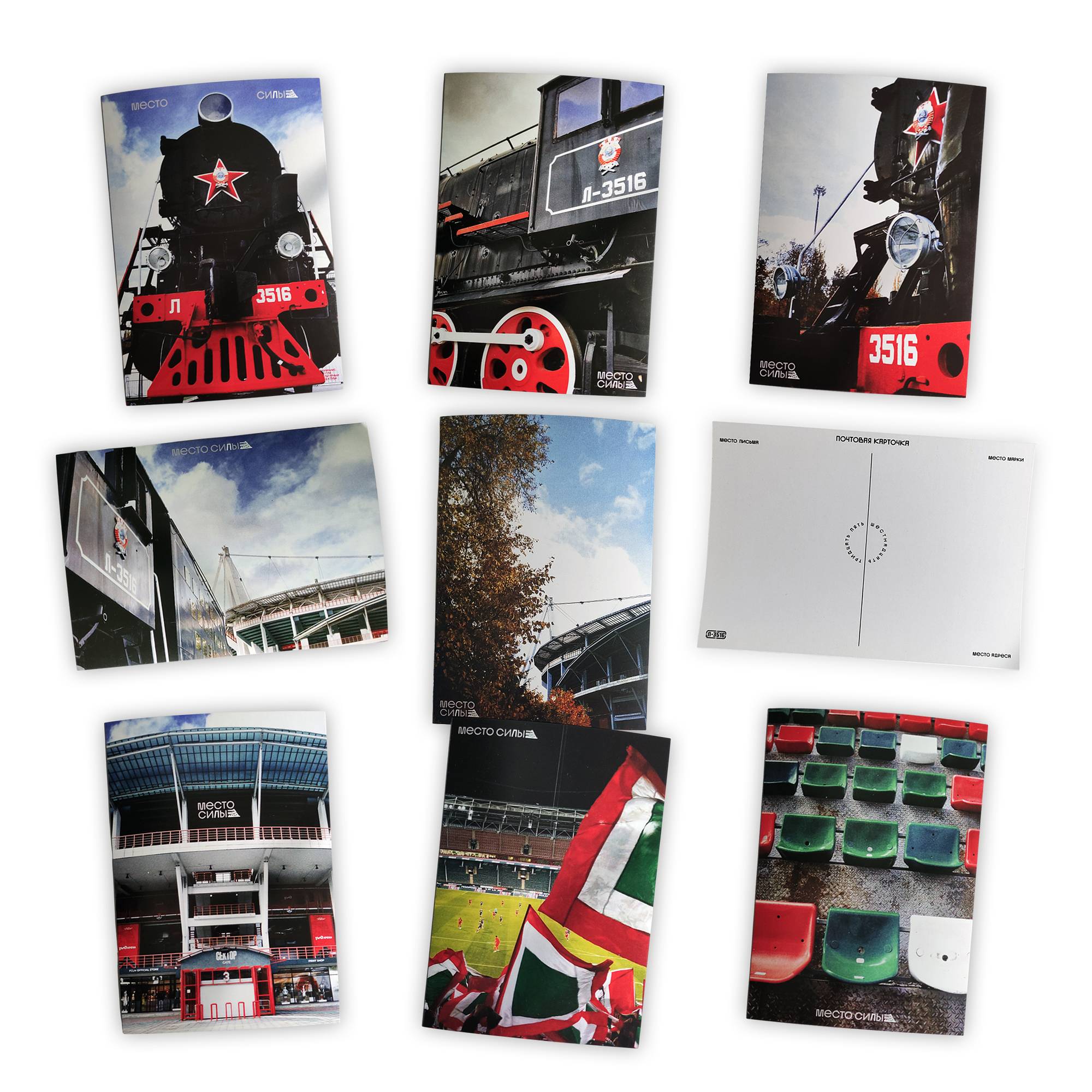 Погожим осенним днём прогулялись по территории стадиона и сделали несколько ярких фотокарточек, собрав их в изящный набор, упакованный в матовый полупрозрачный конверт из кальки. Всего получилось восемь бесконечных открыток, которые можно использовать в качестве почтовых карточек для отправки своим иногородним друзьям или для обмена (посткроссингу) с людьми по всему миру.