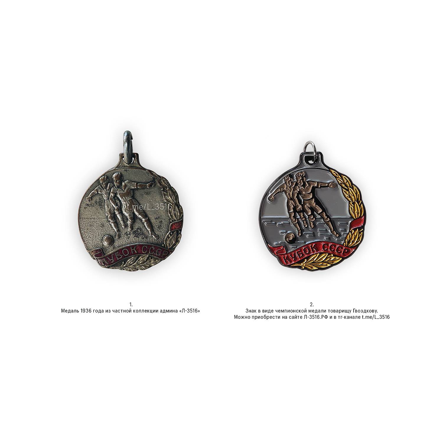 За основу знака была взята медаль, которая вручалась победителю легендарного первого розыгрыша Кубка СССР-1936, одним из которых был футболист московского „Локомотива” Илья Гвоздков, про которого можно прочитать в нашем телеграм-канале.